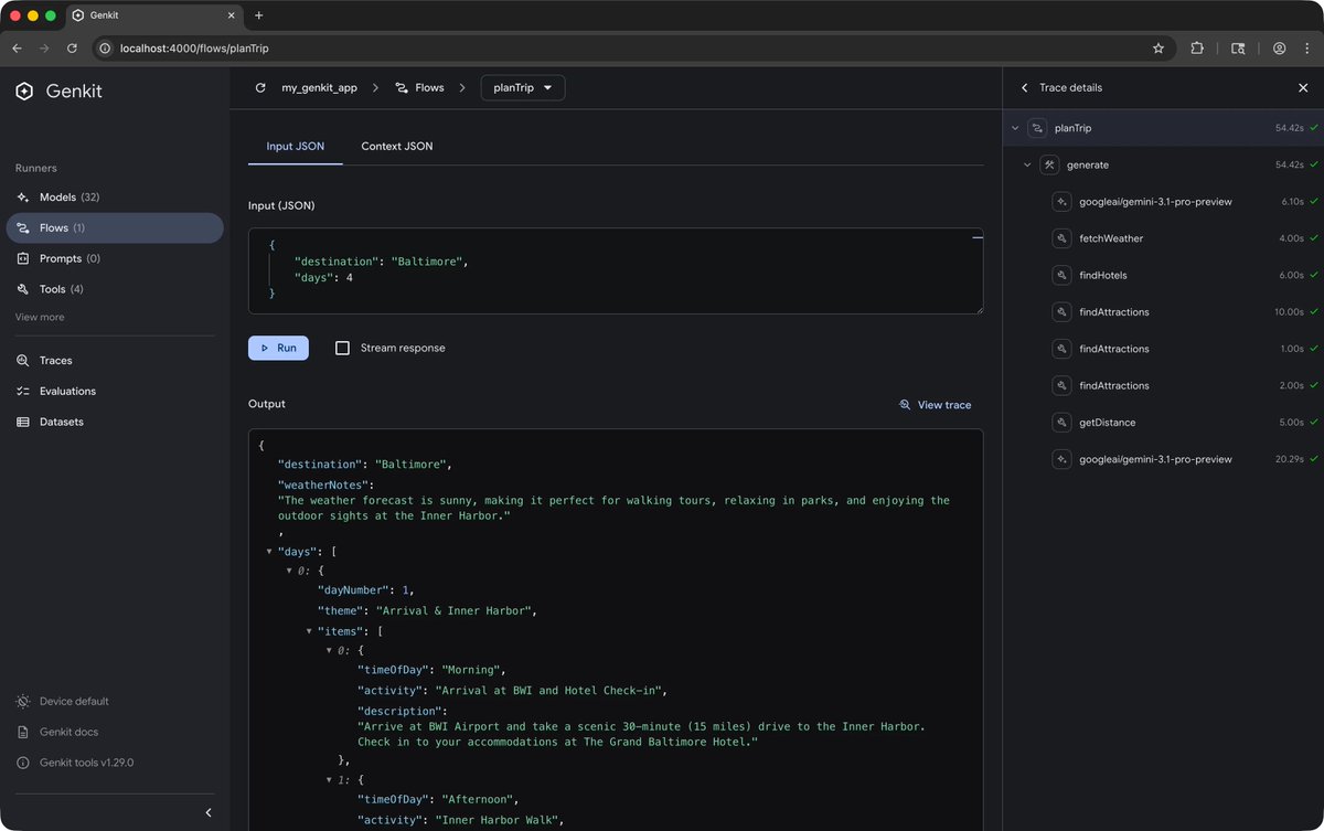 // ... initialize Genkit and define tripPlannerFlow ...