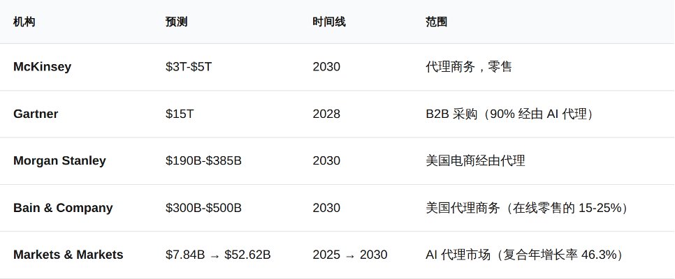 過去十二個月裡,五家分析機構發布了 Agent 商務預測。他們對數字意見不一,但對方向達成了共識。