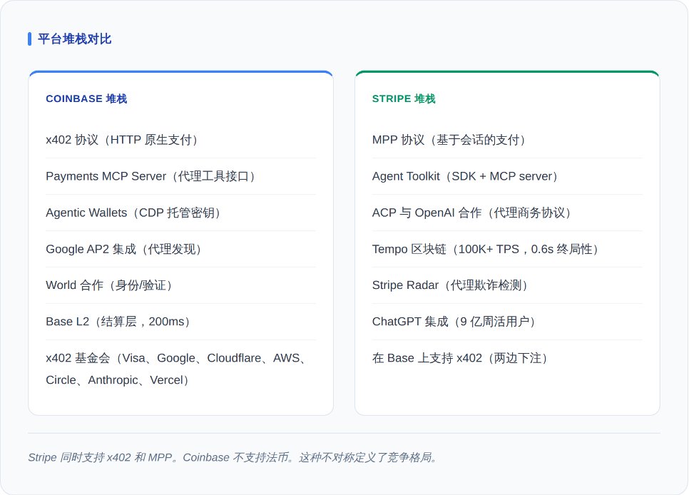 從協議層面拉遠來看,平台戰略就清晰了。兩家公司都在建構全棧 Agent 商務生態系統。協議只是更大佈局中的支付層。