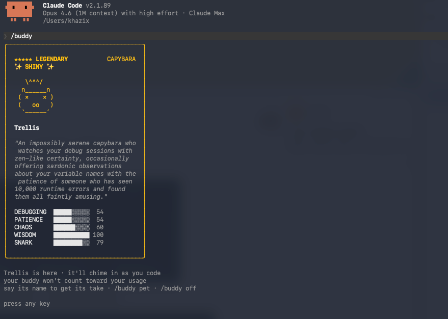 而且後天就是復活節,別人藏彩蛋,Anthropic 藏在了 /buddy 裡。