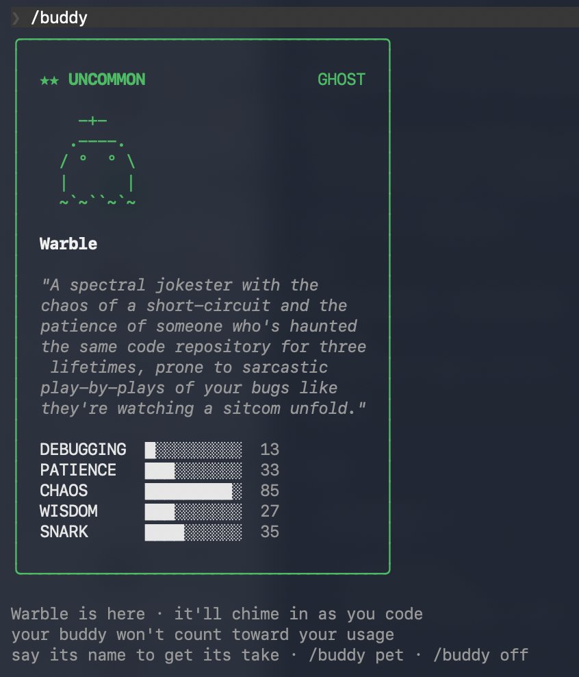 從洩漏程式碼的時間戳來看,今天這個 Buddy 寵物系統就是計畫好的,4 月 1 日首次亮相,如期而至。