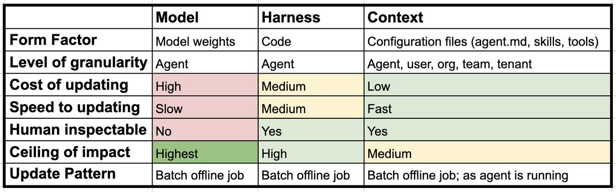 大多數關於 AI 持續學習的討論都集中在一件事上:更新模型權重。但對於 AI Agent 而言,學習可以發生在三個不同的層次:模型 (Model)、框架 (Harness) 和上下文 (Context)。理解這些差異將改變你對建構隨時間改進的系統的思考方式。