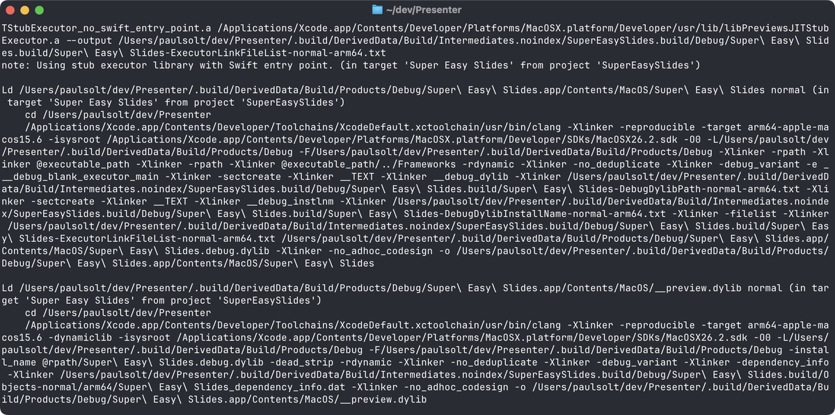Xcode 編譯器的建構輸出極其冗長。真正的錯誤被埋沒在數千行文字中。試圖在 Xcode 建構輸出中尋找錯誤,就像大海撈針一樣。