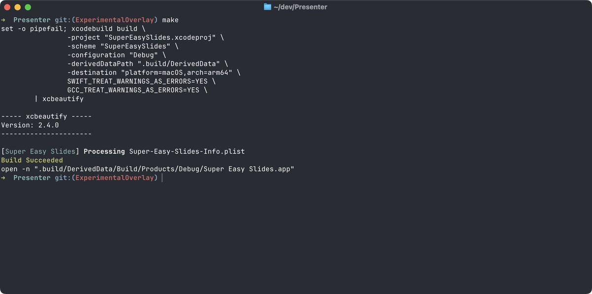 其核心在於:一個 Makefile 使用 xcbeautify 來封裝 CLI 的 xcodebuild 指令。這能從 Xcode 應用程式的建構與測試中產生乾淨、易讀的輸出。Agent 可以看到哪裡失敗了、修復它,然後繼續進行。不需要搜尋冗長的輸出。這適用於 iPhone 和 Mac 應用程式。