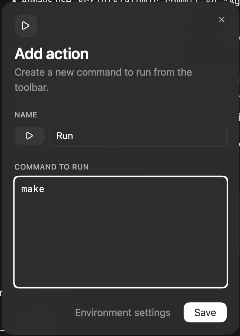 有了 Makefile,你就擁有了一種快速、可重複的方式來建構並執行你的應用程式(透過 CLI 的向上箭頭或 Codex 應用程式中的「Run」按鈕)。