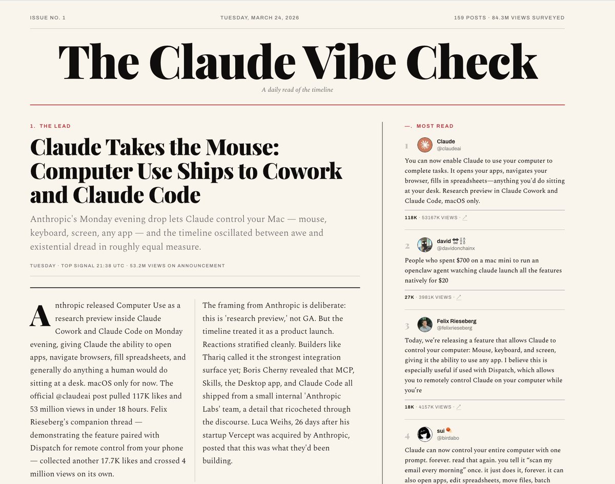 排程(Scheduled):Managed Agent 被排程執行任務。例如,我和許多其他人使用此模式進行每日排程簡報(例如,關於 X 或 Github 的活動,以及 Agent 團隊正在處理的事項)。這是我使用的一個 X 活動每日簡報範例。