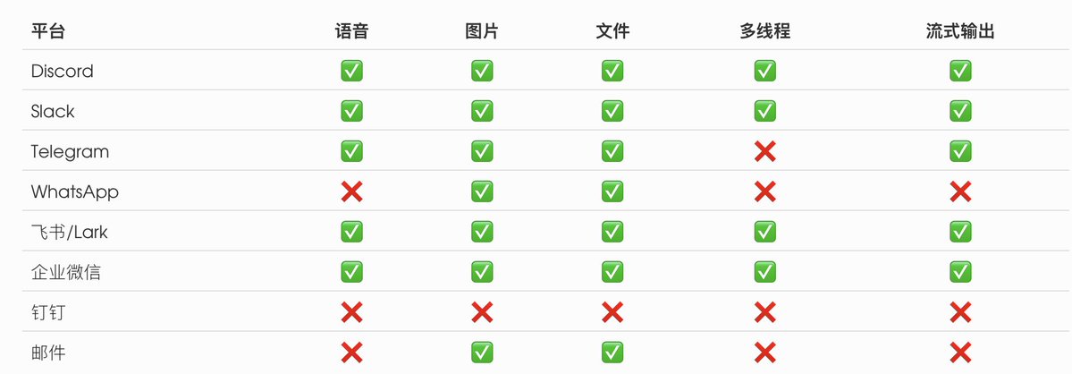 多平台通訊:透過統一閘道器連接 14+ 訊息平台