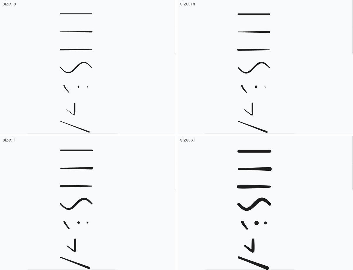 筆畫粗細 (Stroke contrast) — 粗筆與細筆、壓力、對比度、筆畫平滑度。