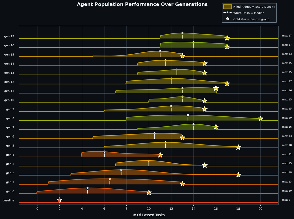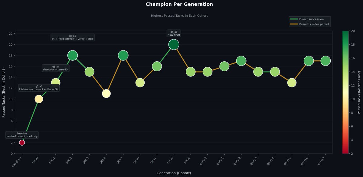 顯而易見,隨著世代更迭,EvoForge 產出了表現優異的 harness……