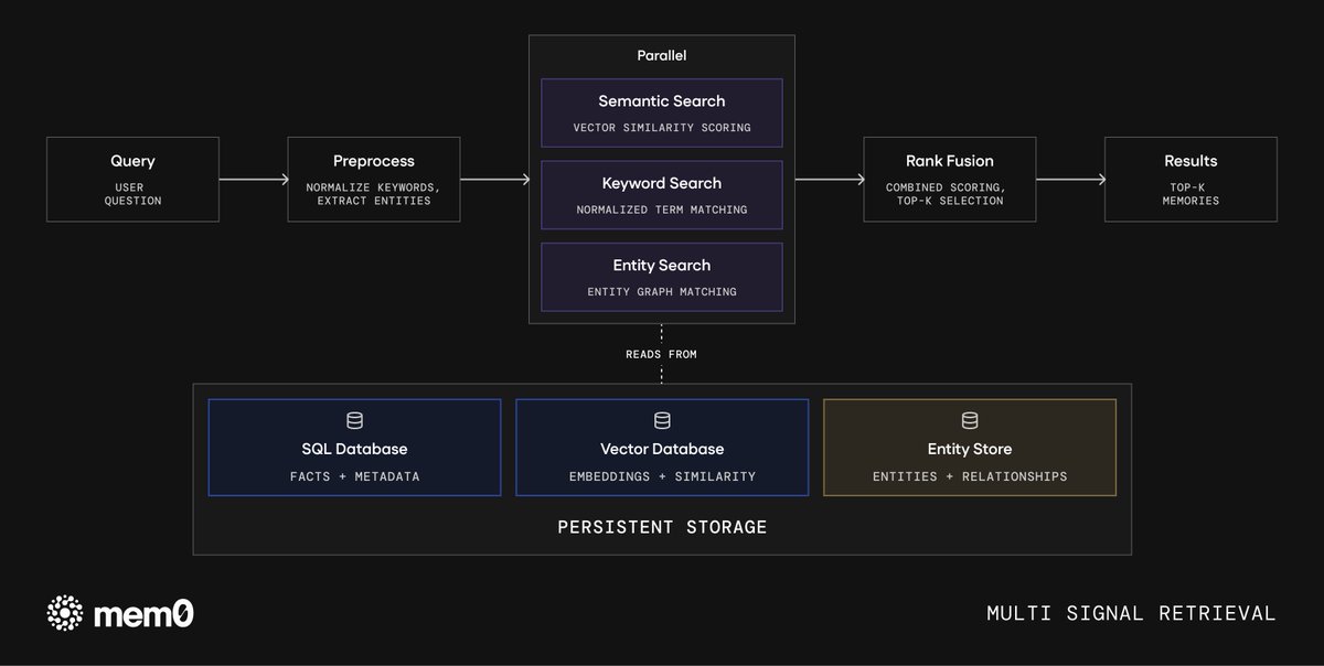 現在,每項記憶都會被分析其中的實體,包括專有名詞、引號內的文字和複合名詞短語。這些實體會被嵌入並儲存在一個獨立的查詢層中,連結關於同一個人、地點或概念的記憶。在查詢時,從查詢中識別出的實體會與該層進行匹配,相關的記憶會獲得排名加權。