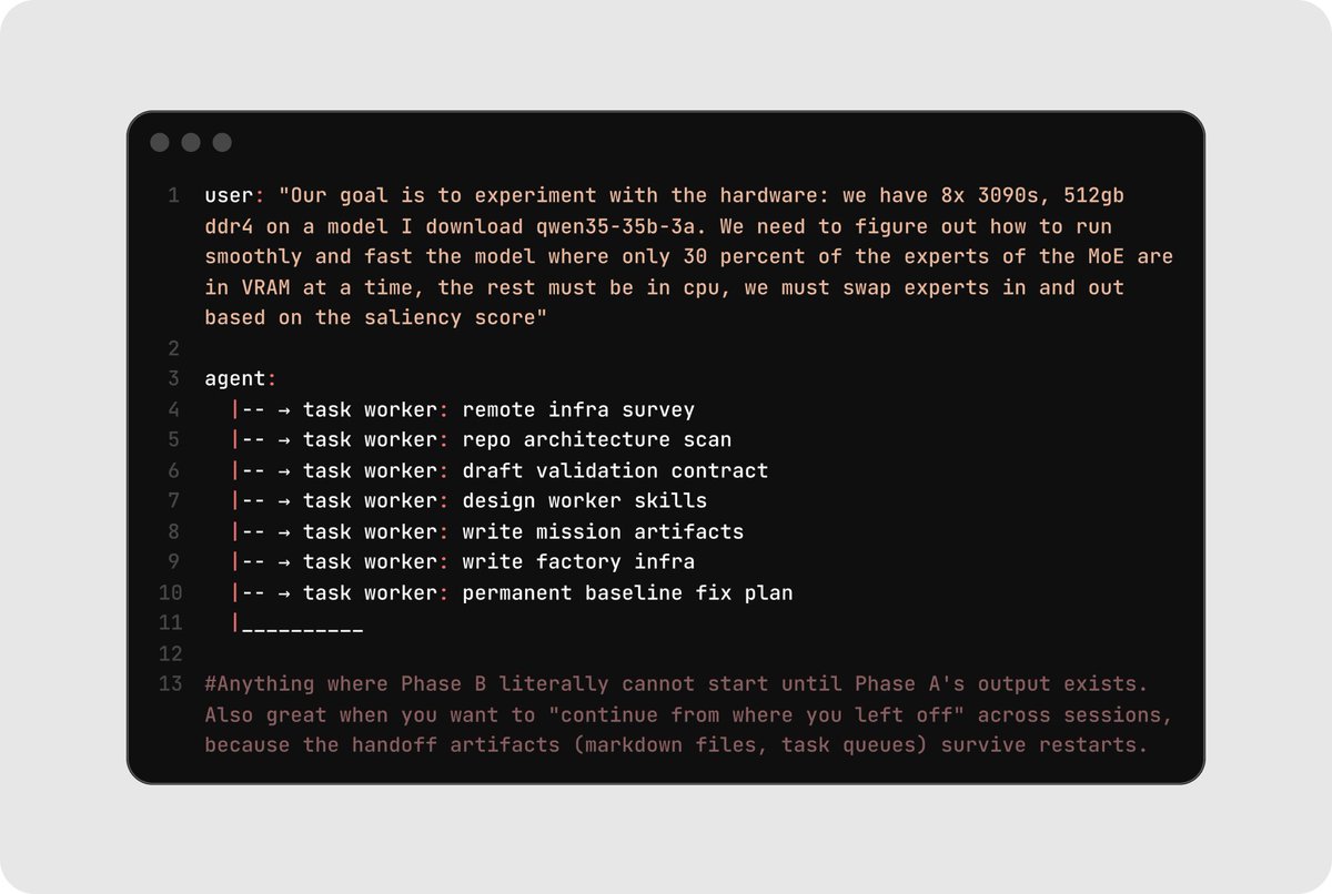 要使這種模式有效,你需要依賴樹、嚴格的順序和精煉的 Prompt。值得參考 https://factory.ai/news/missions 來看看他們是如何處理這個問題的。