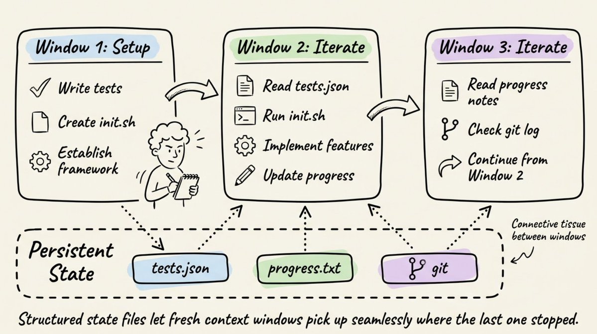 狀態管理在格式與資料匹配時效果最好。對於測試結果與任務狀態等結構化資料使用 JSON,對於進度筆記使用自由格式文字,並使用 git 進行可還原的檢查點。