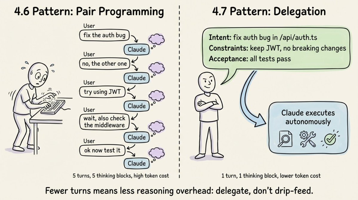 Opus 4.7 帶來的最大轉變在於你如何定義自己的角色。請將 Claude 視為一位你可以委派任務的資深工程師,而不是一個你需要逐行指導的結對程式設計師(pair programmer)。