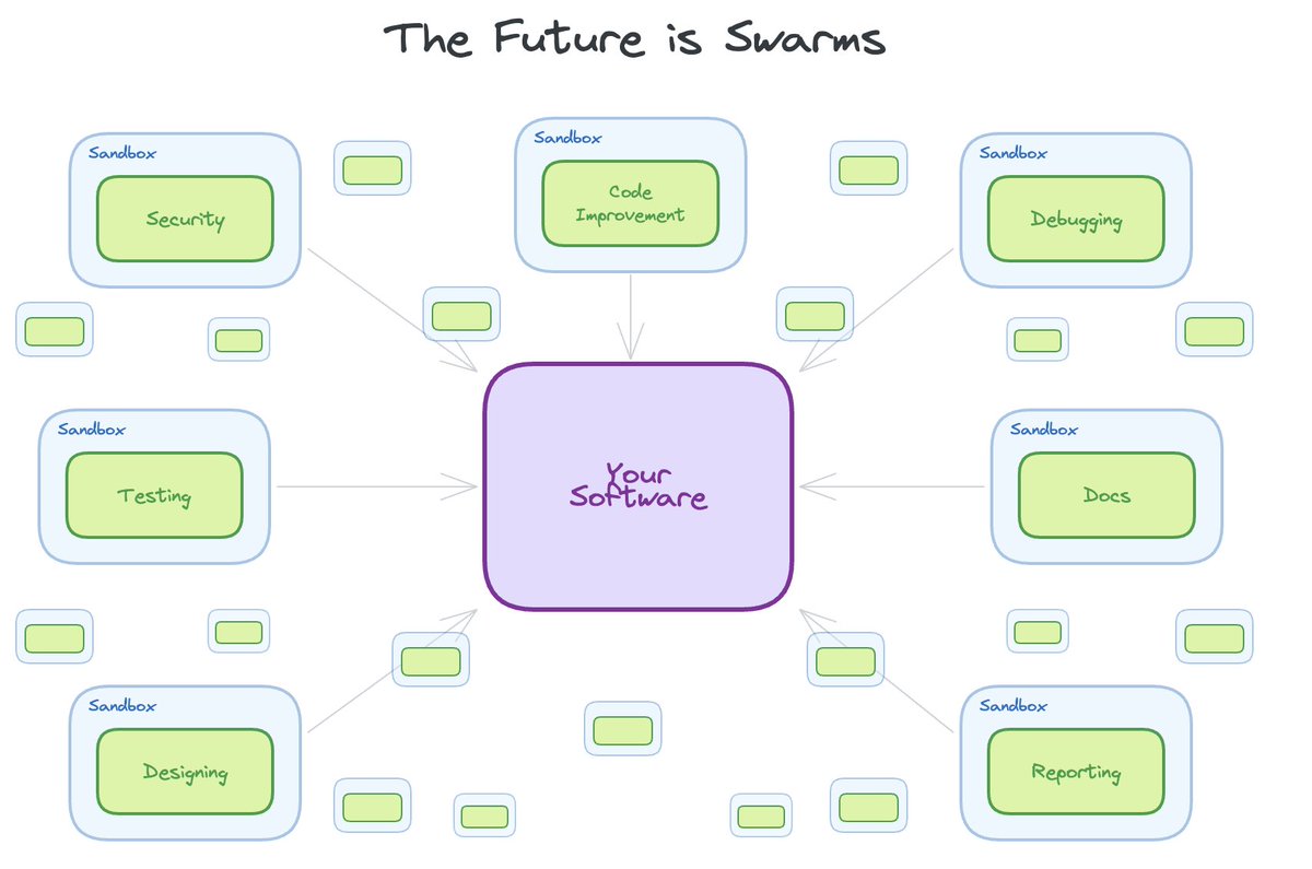 Sandbox 市場的未來是長時間運行的 Harness Swarms。協調後的團隊在多個 Sandbox 中工作,每個 Sandbox 都有自己的軌跡與狀態。個別的 Harness 可能會失敗並重啟,Sandbox 可能會崩潰並重新配置,但整個 Swarm 依然持續運作。