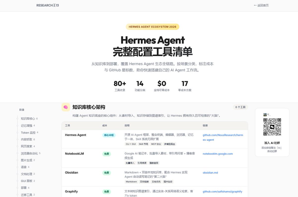 Hermes 生態地圖 → hermes-ecosystem.vercel.app(80+ 工具視覺化)