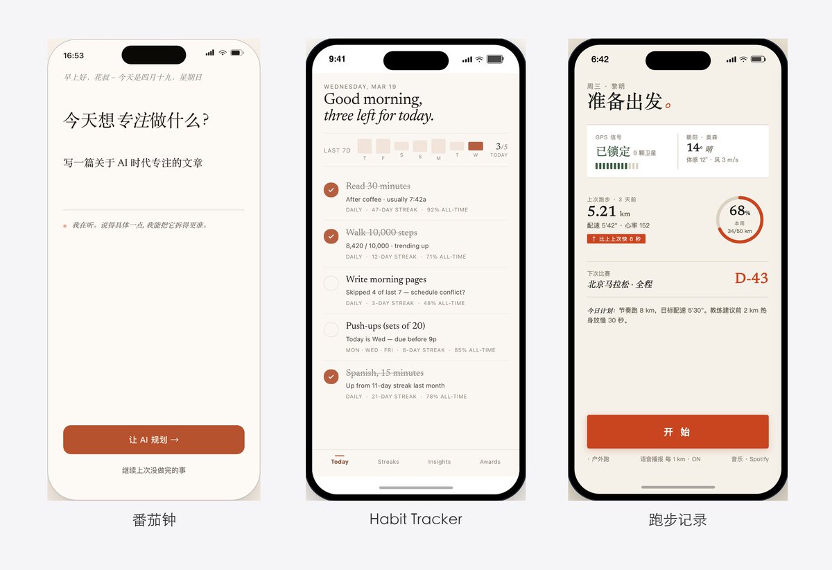 我還用同樣的方式做了 Habit Tracker、Running 追蹤 App、一個浮世繪主題的博物館 App。流程一模一樣,交付品質也一樣。
