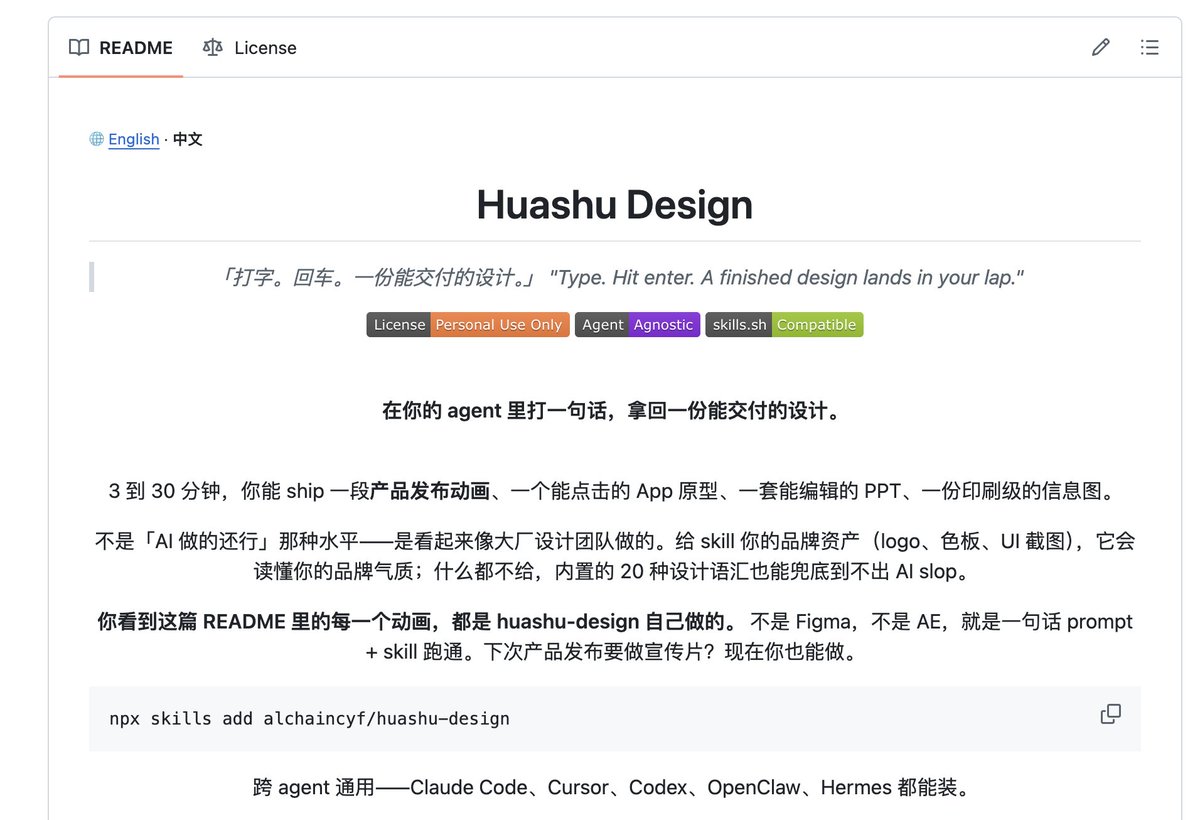 huashu-design 的本質不一樣。它不想做圖形工具,它想讓圖形工具這一層消失。