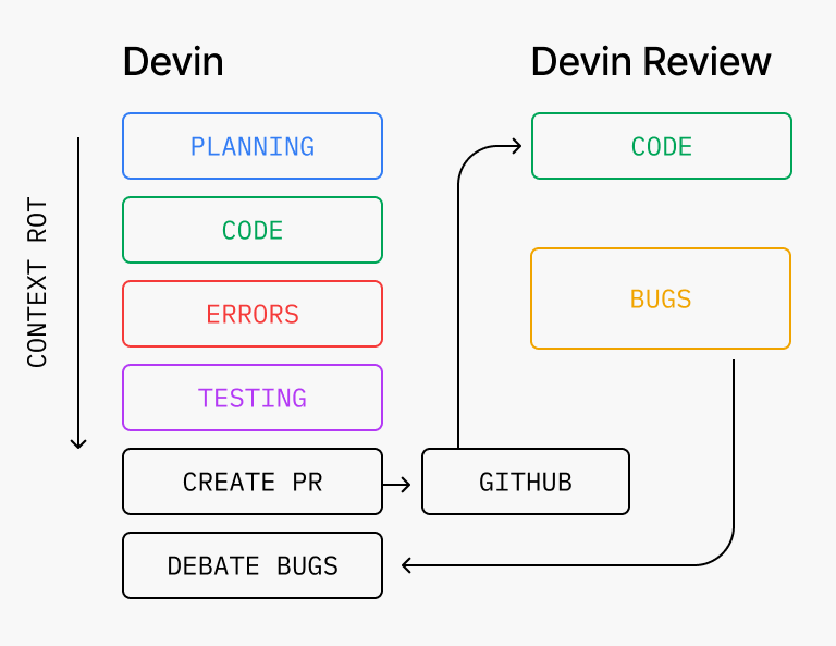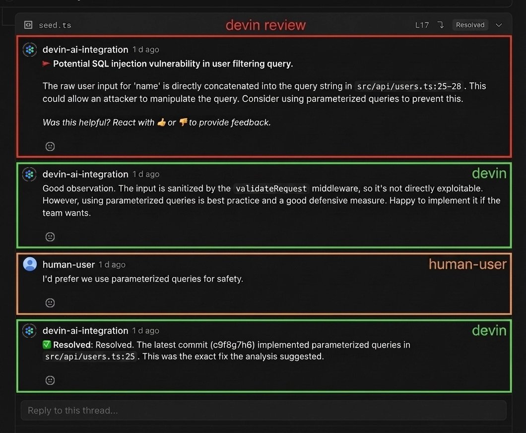 你可能會認為讓模型審查自己的程式碼不會有任何有用的發現。但即使是 Devin 自己寫的 PR,Devin Review 平均每個 PR 仍能抓出 2 個 Bug,其中約 58% 是嚴重的(邏輯錯誤、遺漏邊緣案例、安全漏洞)。系統通常會進行多輪程式碼審查循環,每次都能發現新的 Bug(這並不總是好事,因為這可能很耗時)。今天,我們讓 Devin 和 Devin Review 原生進行相互迭代,這樣當人類打開 PR 時,大多數 Bug 都已經解決了。