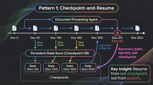 在多日工作流程中,最常見的失敗模式是上下文遺失。假設一個 Agent 在四小時內處理了 200 份文件,卻在第 201 份文件時發生錯誤。如果沒有檢查點(Checkpointing),你就必須從頭開始。